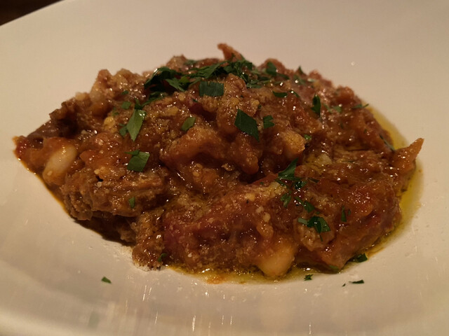 実は「軽いおつまみ」のなかに素晴らしき逸品が常駐している。牛の胃袋と白いんげん豆のトマト煮込みだ。トリッパの食感とトマトソースがお好き方には是非オススしたい。豆料理にありがちなボソッとした感じもなくスルリと頂くことができ、前菜としてもとてもいい。