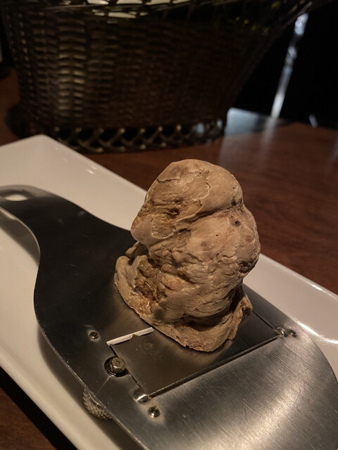 毎年、秋になると、高級レストランとも張り合えるレベルの大きくて香り高いアルバ産白トリュフを入荷される。これをタヤリンと一緒に頂く。シンプルだけど鉄板だ。