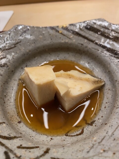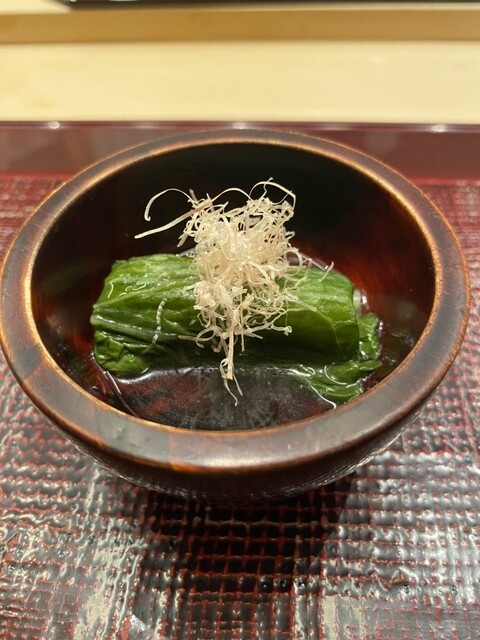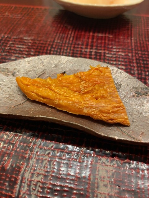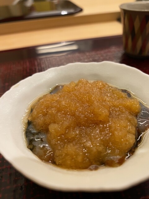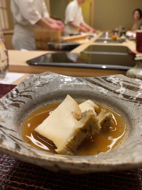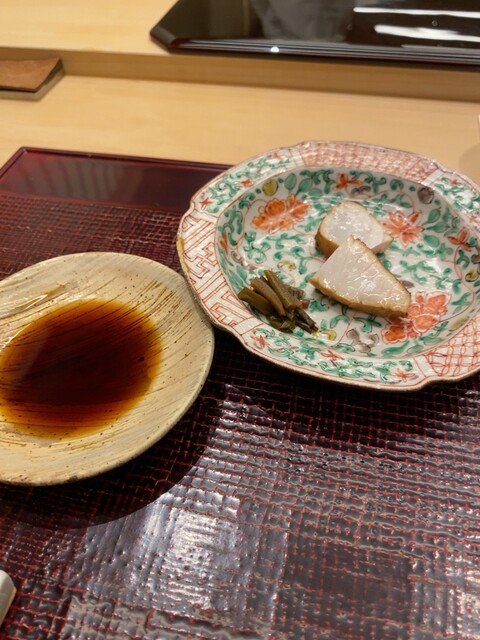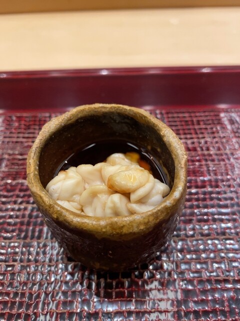 ①おつまみは、ダシがきいたしっかりとした味わいのものが多く、お酒が進みます。特に、おつまみの前半に蛤、あさり、鯛などからしっかりと出汁をとったスープが出てくるのですが、これがいつも美味しい(注:2021年現在は常に出てくるものではなくなりました)。自分がお酒好きであることを把握してくれているので、「もう少しおつまみいきますよね?」と確認を入れてくれつつも、いつもおつまみや珍味を多めに出して頂いています。