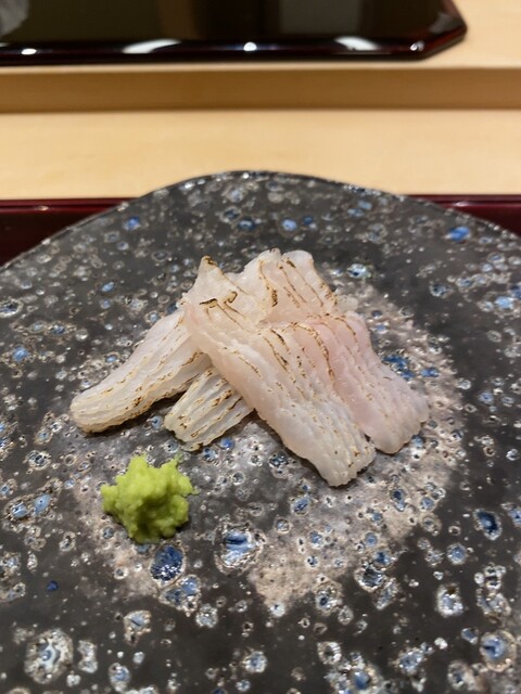握りは、前回訪問時と同様にマコガレイとシンイカでスタートしたのだが、三つめの白甘鯛が本日の白眉。塩だけで〆たとのことだが、物凄い旨味。まさに素材の力。残念ながらアジはなかったが、先月はなかったコバシラが復活。アカガイもシマアジも良かった。他の方に出ていたイクラが自分には出されなかったのがなぜなのか、少し不明だったのだが。