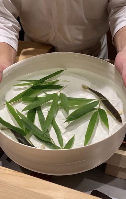 ◯お椀はハマグリとタケノコ。ハリウド(針状にしたウド)が添えられていた。