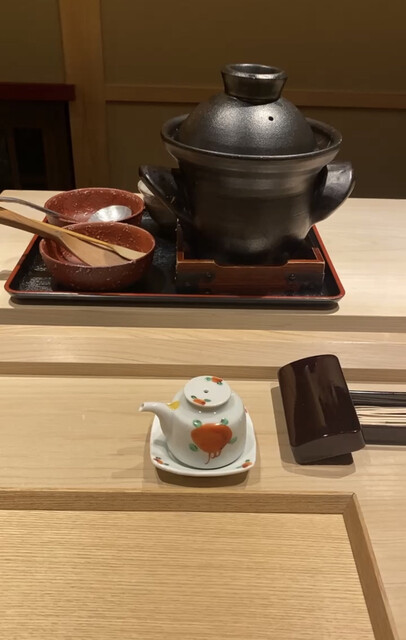 今年から〆のご飯の出し方を大きく変えられた。ざっくりいうと三種類のお料理が出される。一つ目は蕎麦米(実際には蕎麦の実を使った雑炊のようなお料理)。二つ目はこちらのお店のこの時期のスペシャリテである鯛の滋味出汁と白米。三つ目は豆腐(だったか?)の卵綴じご飯。今後は毎月材料を変えて出していくとのこと。このお店に通うのがますます楽しくなってきた。