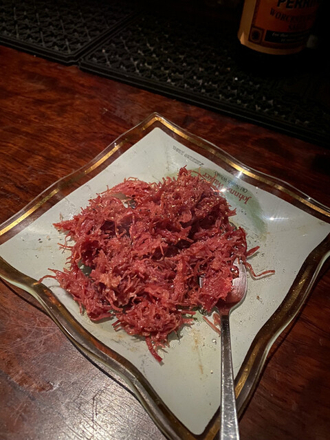 最後に、軽いフードなども置いてあるので、小腹が空いていても大丈夫。とりわけオーナーのカレーに対する愛情が深いせいもあって、こちらのカレーはなかなか美味である。また、お付き合いのある料理人から仕入れるその時々のおつまみの類も充実している。