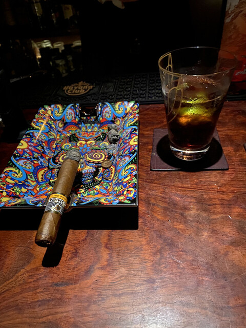 2023年最初の訪問。少々酔っていたので、ドクターペッパーをラムなしでいただき、ラムをストレートで3杯ほど、そしてシガー。