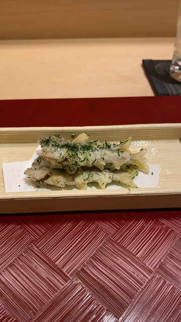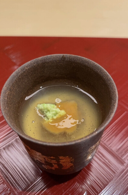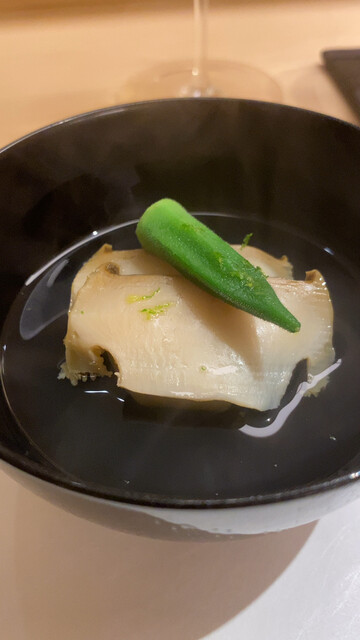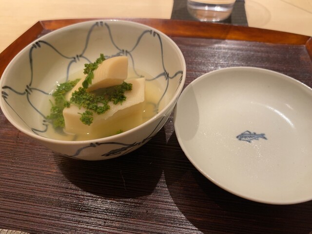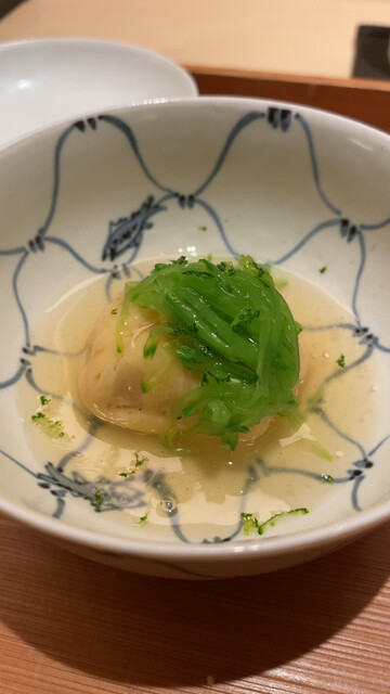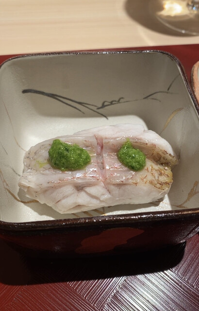 〇お椀は白甘鯛。少しさっぱりめの肉感で、それに合わせてか、とてもすっきりとしたお出汁。他のお客さんにはスッポン出汁ベースのお椀(スッポンとフカヒレの入った飛龍頭が入ったもの)だったが、自分が前回それをいただいていたからか、自分のお椀は白甘鯛だった次第。