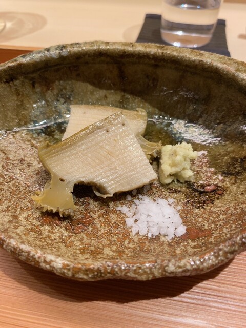 お酒はシャンパン(アンリオのブラン・ド・ブラン)をグラスでいただいた後で、ヴァレンティーニのトレッビアーノ・タブルッツォ2018年。こんなものを置いている日本料理店なんてそうそうないだろうなぁなどと思いつつ。