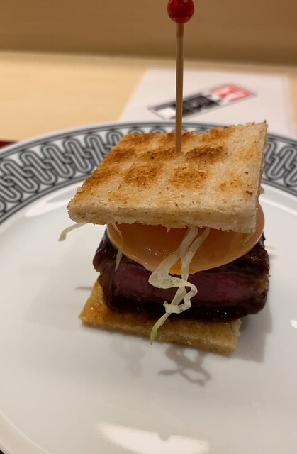 そういえば、スペシャリテであったノドグロの飯蒸しは出なかったな。ビーフカツサンドも少し目先を変えて小さなバンズに挟んでハンバーガー風に仕立てられていた(お肉はもちろんシャトーブリアン)