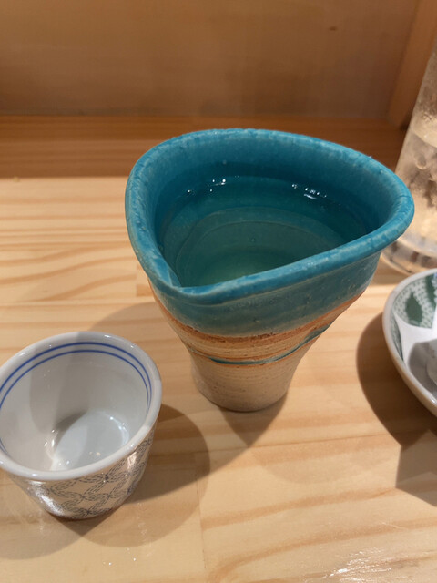 お酒は日本酒を頂いた。最初に「片口とっくりで3杯いただきます。銘柄はお任せしますが、だんだんと飲みごたえのあるものに変えてください」とお伝えしたところ、山口県の「雁木ANOTHER」、栃木県の「鳳凰美田 辛口純米「剱」瓶燗火入」、そしてお馴染み「黒龍 大吟醸 CRISTAL DRAGON」。最初の二つは黒板に書かれていたもので770円。黒龍は黒板には載っていないものだったのでお値段は不明である。