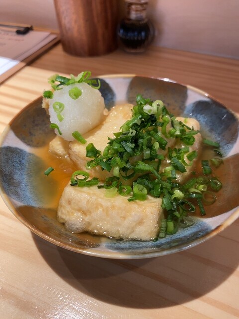 お料理人はお一人のようだが、その割には豊富なメニューである。どちらかと言うと和食の居酒屋にありそうなメニューが多いが、よだれ鶏とか麻婆豆腐(とはいえ、後述のとおり一捻りされたものではあるが)のような中華料理もある。