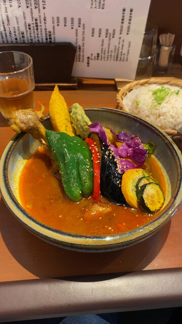 この日頂いたスープカレーは「頂点」2,600円。写真を撮り忘れたが、チキンに加えてたっぷりの揚げ野菜。辛さは普通、スープ大盛り、ライス大盛りでお願いした。スパイス感もしっかり、出汁感もしっかりとあるスープは相変わらず美味だ。ライスは(定食屋も始めたので)白米100%に変わっていた。