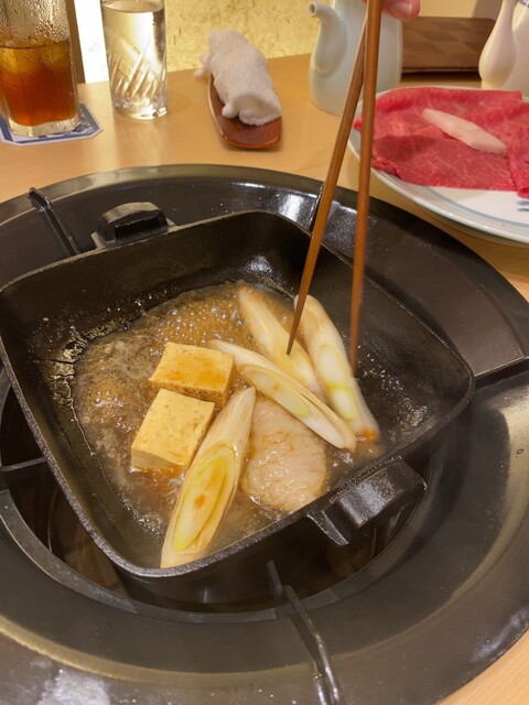 以前はすき焼きを単品でオーダーすることができのだが、いまはコース仕立てのみ。すき焼きとしゃぶしゃぶという移転前からあった二つに加え、ステーキ、焼肉、蒸籠蒸しも追加された。