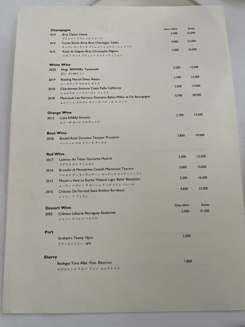 イノベーティブなお料理なので、おまかせで相性の良いお酒を組み合わせていただきました。