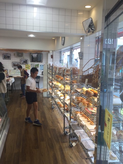 細長い店内に多様なパンが置かれており、奥には、5席ほどのイートインコーナーもあります。