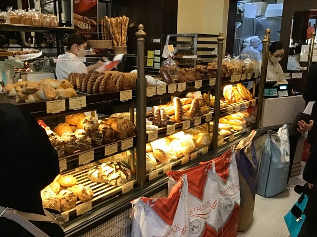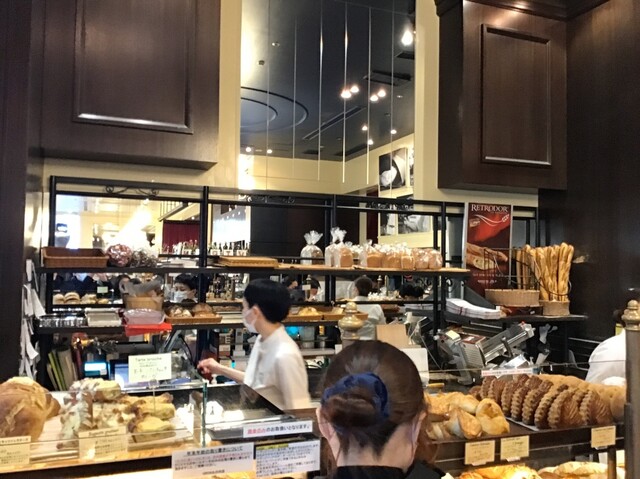 テイクアウトの販売は、ショケースの中のパンを見て店員に欲しいパンを伝え、レジで引き渡されるスタイル。