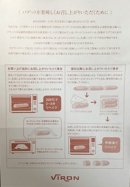 バゲットをおいしく召し上がりいただくために