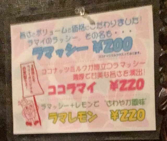 ラマッシーは、ラマイ(店名)のラッシーという意味だそう。