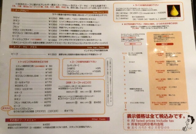 2人とも スープカレー チキン ¥1250 + ラマッシー ¥200 を注文。