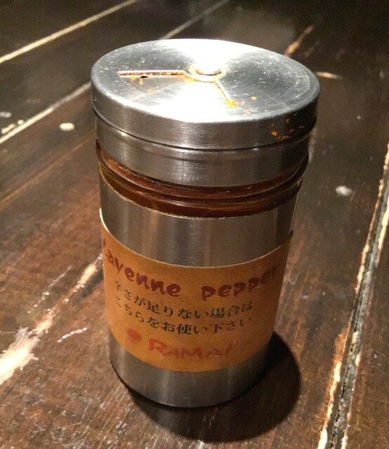 卓上にはカイエンペッパー(粉末チリペッパー)がありますので、無理しなくても後から自分で辛さを追加できます。