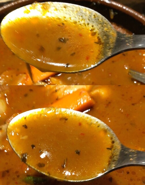 スープは、鶏ベースでココナッツミルクの風味があり、野菜や果実もふんだんに使われていて、スパイスは調理直前に挽きなおして調合しているそう。