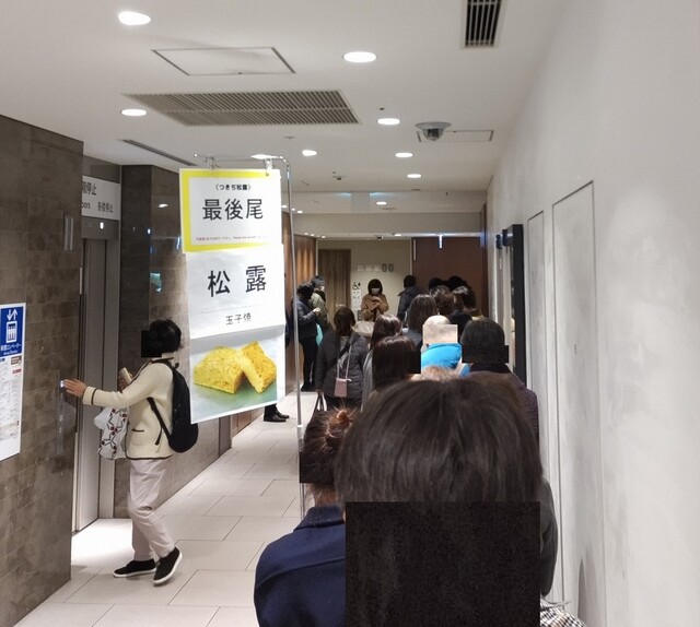 外観 列最後尾 しっかしプレーンの玉子焼き松露にSOLD OUTの文字が