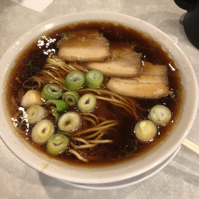 麺はストレートの細目だけどコシがある感じ。スープは濃いめの醤油で、ダシが効いて、ちょっと油っぽい。醤油味が濃いので白めしに合うだろう。