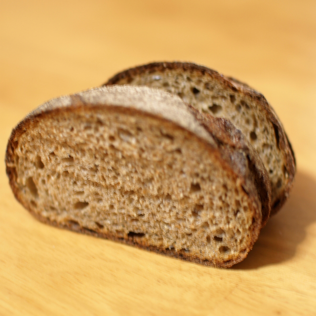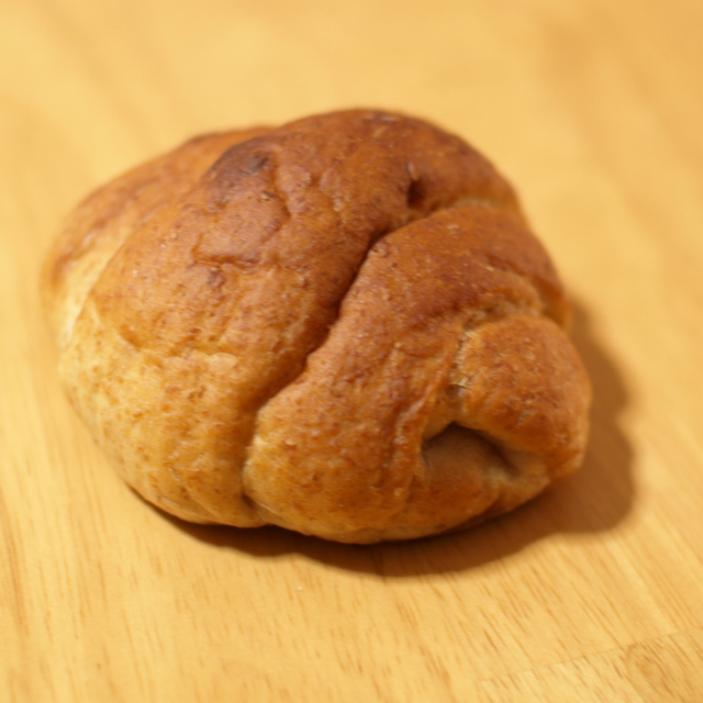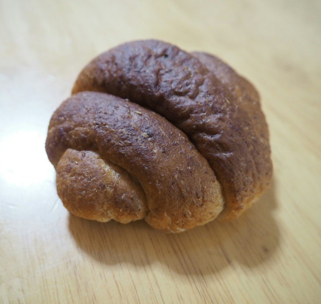 リベイクして食べてみると、もっちりして少し酸味があって、味の濃い食事パンでした。