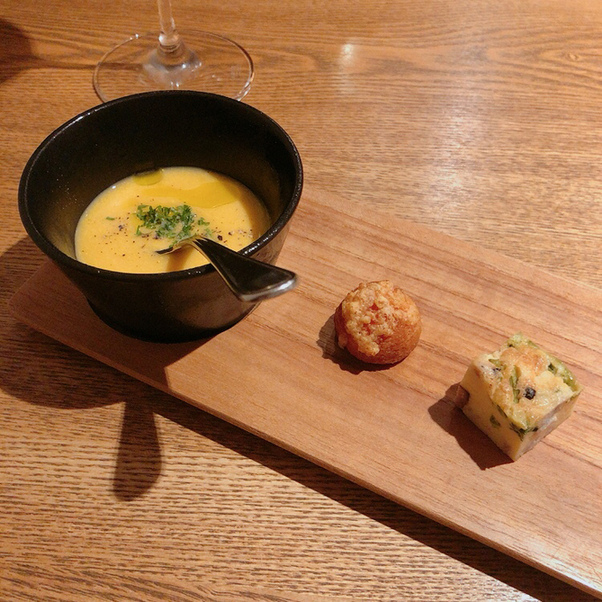 蝦夷鹿が一番おいしいと思ってたけど、火入れが上手いのかとても柔らかく脂肪はないのにとてもジューシーに頂けました。添えられてるジャガイモも食べてビックリ!何故こんなにホクホクなのか聞いたら工程を説明してくれました。どれも手間暇かかっていてプロって凄いなと改めて実感。