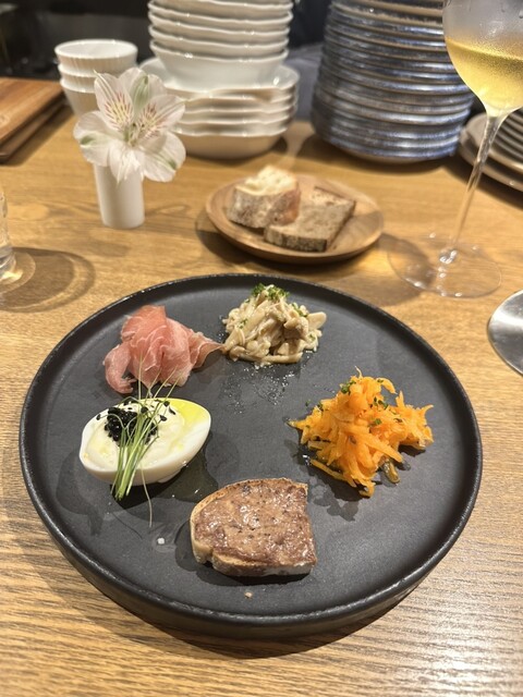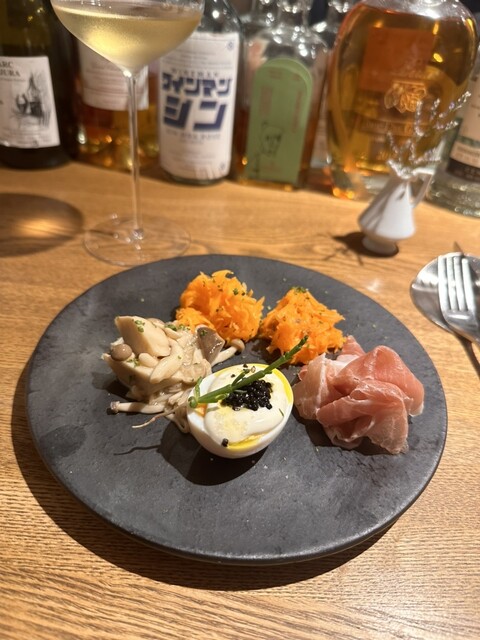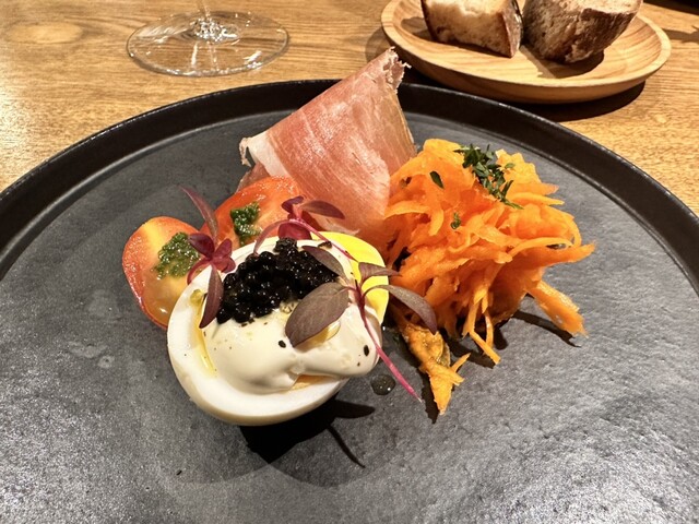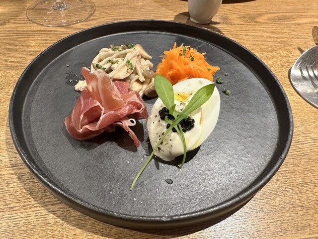 前菜の盛り合わせの生ハムがまず美味しかった。