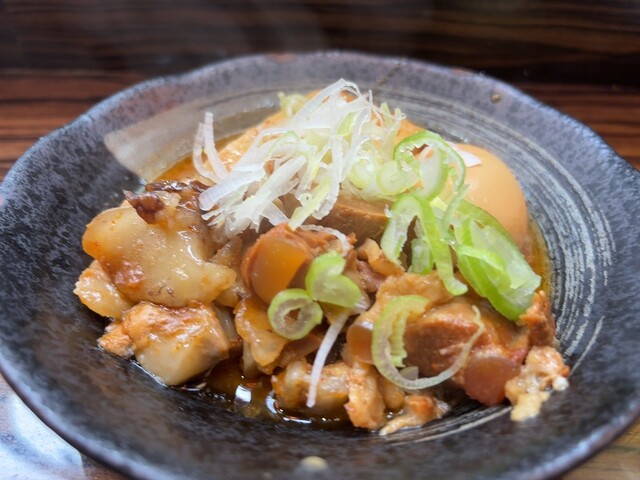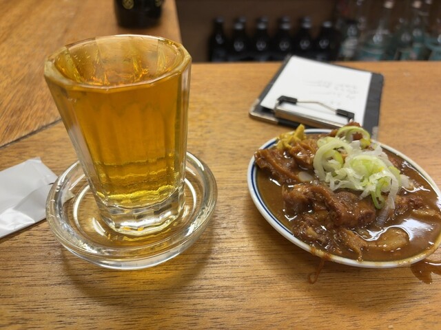 どて焼、豚ヒレ、えび、麩、たまご、なすび、瓶ビール大