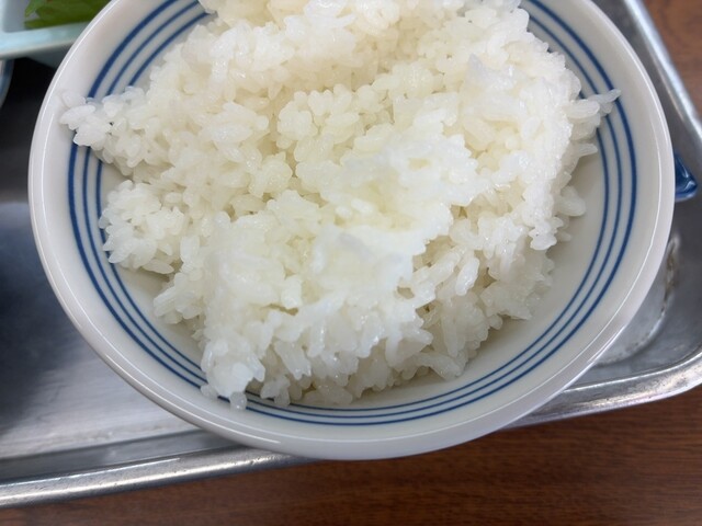 ご飯大盛り、味噌汁、卵焼き、まぐろ刺身、牛肉のしぐれ煮、しらすおろし(おまけ)