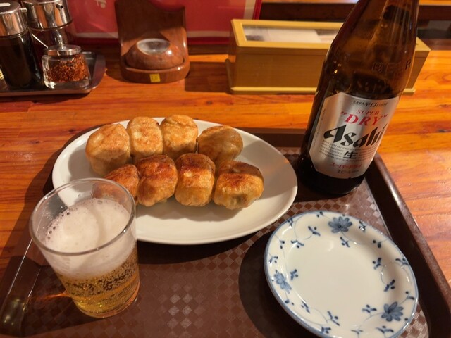 焼き餃子1人前、キムチ、瓶ビール