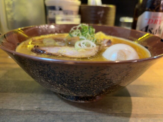 みそラーメン、半熟ゆでたまご、瓶ビール