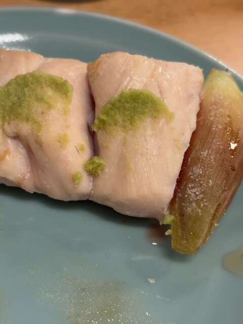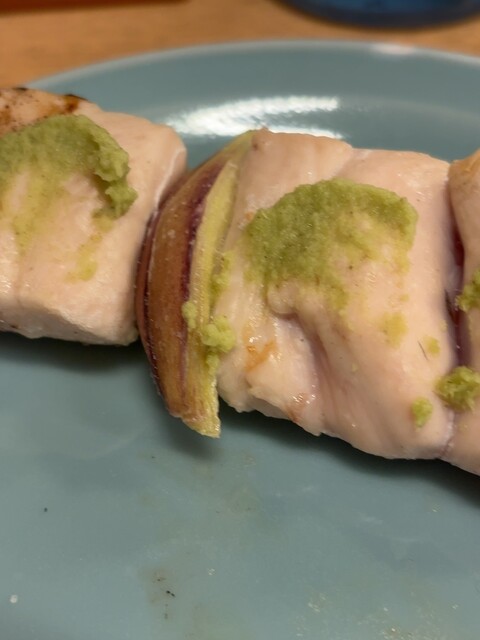 ねぎま。鶏肉がジューシーかつパサパサしておらずジューシー。