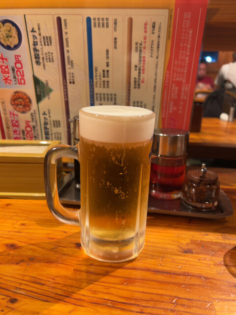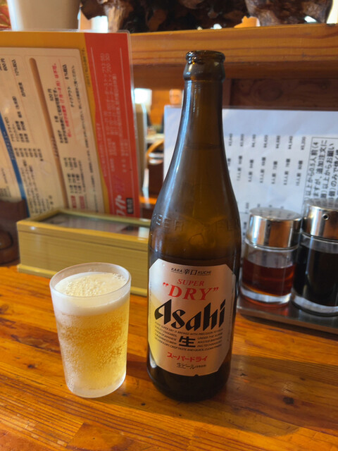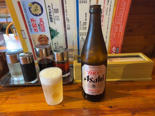 酷暑で喉カラカラ。瓶ビール1本は餃子来る前に飲み干してしまった。