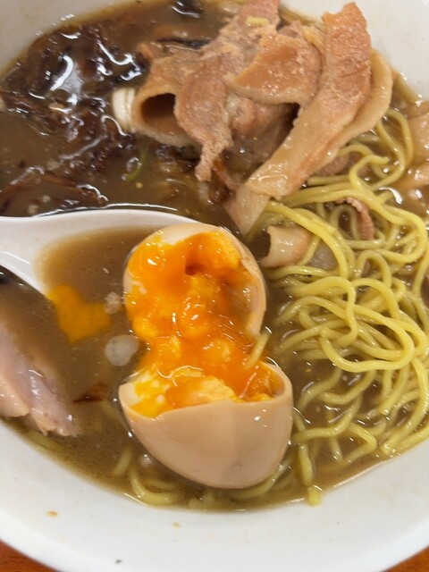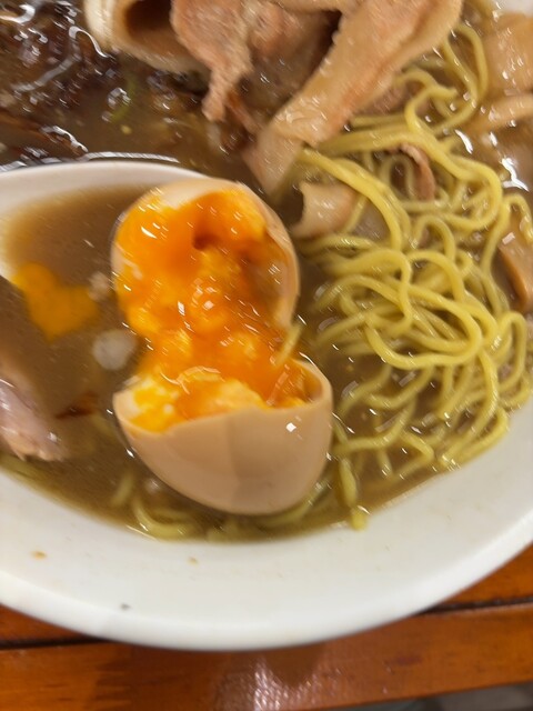 味玉。個人的には黄身も流れる感じでスープに混ざるこでなく半熟が好みかな。