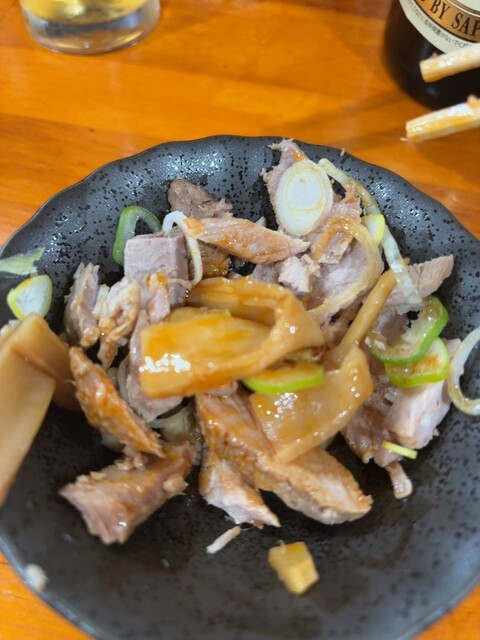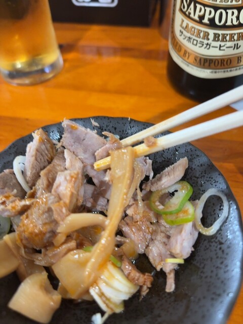 ビールセット。赤星に、チャーシューメンマにラー油かけて美味しい。