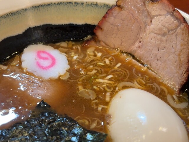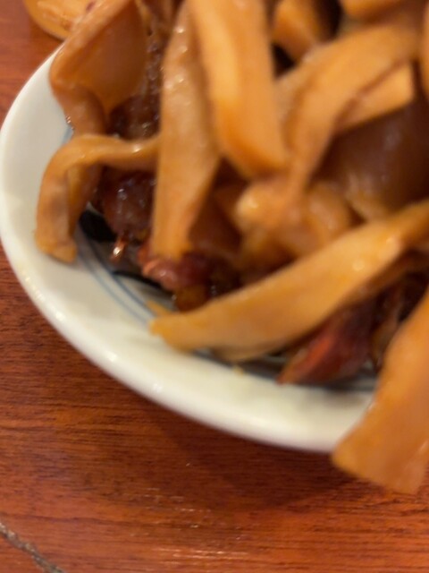ビール中瓶おつまみつき。ビールはクラシックラガーの中瓶。グラスはうすはりグラスで超軽く飲みやすい。おつまみは、大勝軒、べんてん、としおか、とみ田同様、メンマ、チャーシュー、ネギにラー油かけ。美味しいに決まっている。吊るし焼きチャーシューを蒸し器で温めて温かいがこんがりしているところもあり美味しい。としおかは煮豚なので差異があって良い。ラー油はとしおかより辛めだが許容範囲。としおかのおつまみと比べて、甘みより辛味かな。