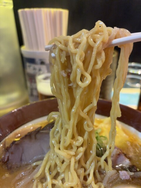みそラーメン、半熟ゆでたまご、瓶ビール