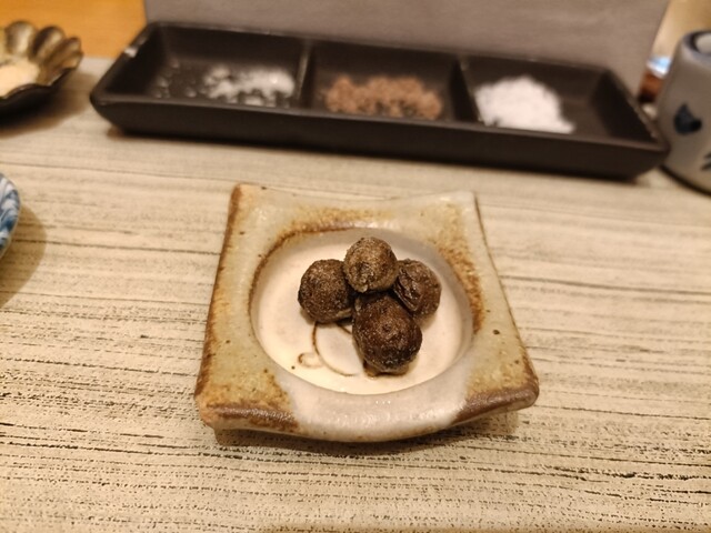 大先輩に誘われて行ってまいりました。当店は通常の天麩羅店のように天麩羅一辺倒ではなく、割烹店のように一品物(しかも、高級食材ばかり)が提供され、より天麩羅が美味しく感じられます。
