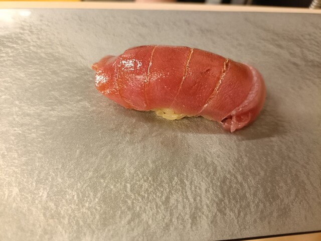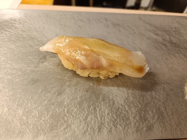 写真の順番に、キンメ、平目(何か柑橘系でさっぱりめちゃ旨い)、白イカ(これも柑橘と塩)、赤身、中トロ、ホッキ貝(撮り忘れ)、ゴマサバのシメサバ、黒ムツ(歯ごたえあり)、シマアジ、真イワシ、白甘鯛昆布締め柚子の香と11貫一気食い。追加オーダー出来ないので、軽く30分強で完了!一人食いには丁度いいです!