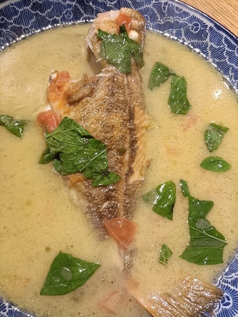 先ずは、冬なのに岩牡蠣が出てきたかと思う位、超ビッグサイズの生牡蠣で度肝を抜かれ(お代わりしました!)、カラスミ白子のフリットで悶絶し、ヤリイカの網焼きやアクアパッツァで昇天しました。他にも頼みたい魅力的なメニューが盛り沢山。