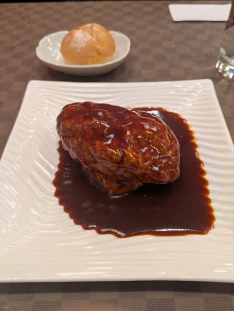 丸パンはデミグラスソースをつけて頂きました。