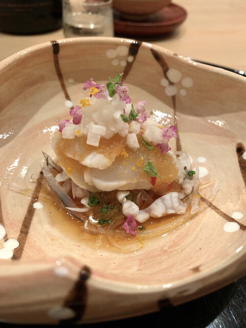 艶々と輝くケンサキイカ、甘味のあるウニ、柔らかいけれど弾力ある食感の鮑、清流の女王である鮎は稚鮎と若鮎の2種類、脂がのったフワフワ穴子など、どれも美味しくて感動の料理の数々。