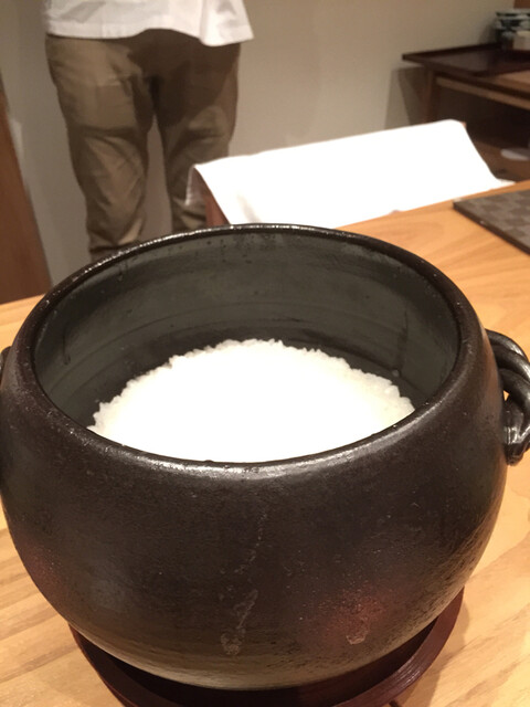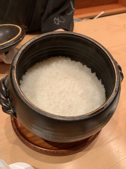 ご飯は魚沼産コシヒカリを土鍋で炊いて、そのままテーブルに持ってきてくれます。