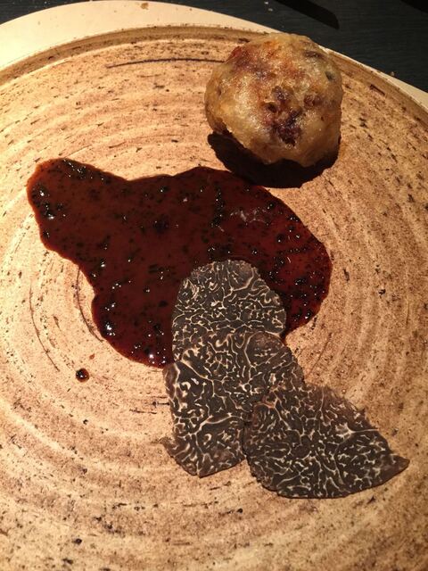 黒トリュフと赤ワインのソースで。