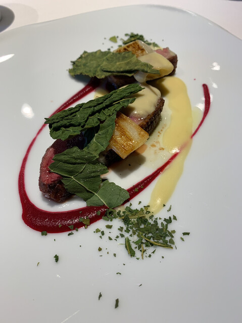 その下には牛蒡のキンピラと牛蒡のムースが入っていてほぼ和テイストなのですが、ポルト酒の香り漂う和に近いフランス料理になっています。