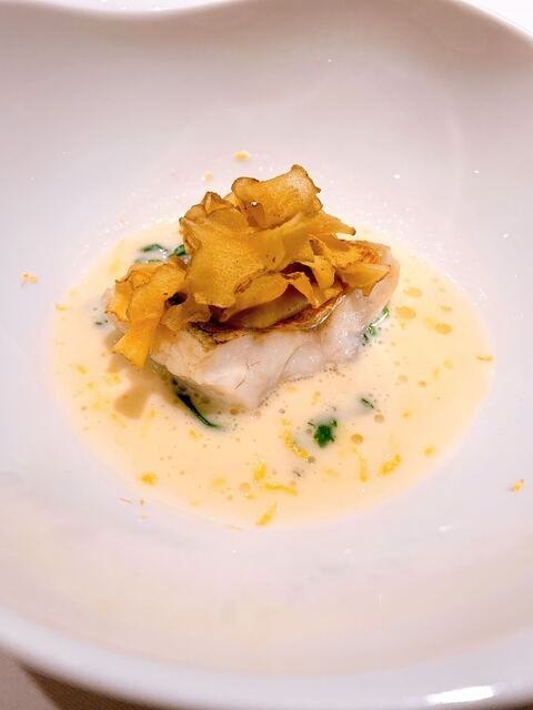 ソースはレモンゼストを効かせた骨の出汁のアラクレーム。