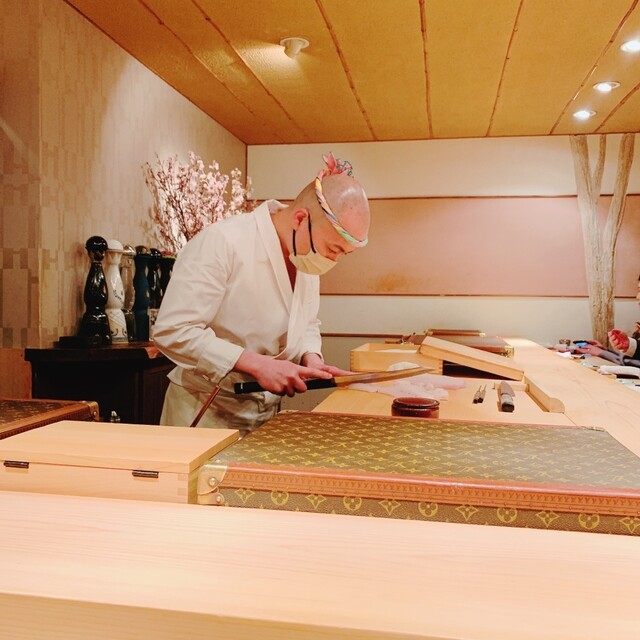 目を引くのはカウンターとつけ場の間に置かれているヴィトンのアタッシュケース。