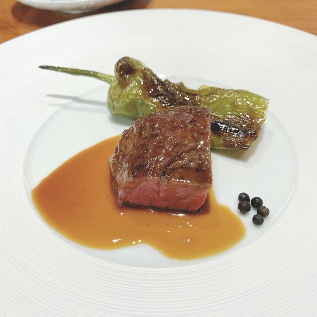 お肉は山口県岩国の希少な銘柄牛「高森和牛」をミートスペシャリストの沼本憲明さんによる「沼本カット」で。