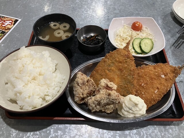 アジフライ定食からあげ2個つき